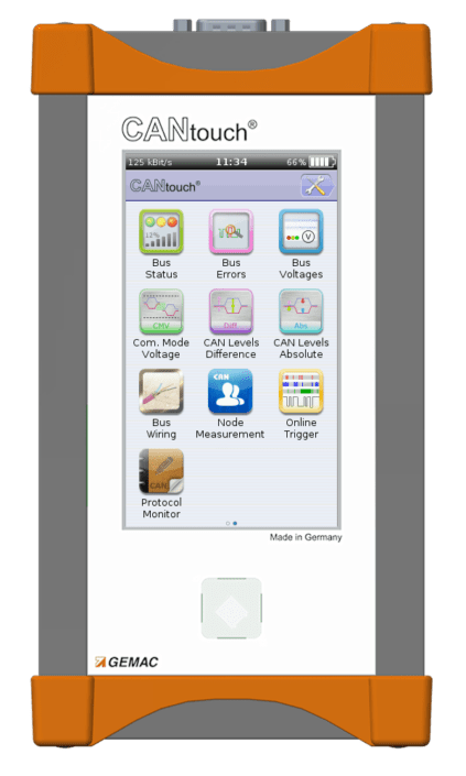 Soll schnell und mobil gemessen werden, ist das CANtouch im Vorteil. Auspacken, CAN-Anschluss verbinden und los geht’s. Keine externe Stromversorgung, kein Laptop, kein USB-Kabel sind nötig. Auch das Oszilloskop kann man eingepackt lassen, denn absolute Werte kann das CANtouch direkt messen.Die Software des CANtouch wurde mit der kostenlosen CAN-Bus Tester 2 – Software verzahnt. Messarchive und Datenaufzeichnungen vom CANtouch sind direkt in der PC-Software importierbar. Dort lassen sich auch Protokolle drucken, Auswertungen des Datenverkehrs und Vergleiche von Messungen nachträglich ausführen. Direkter Fernzugriff auf das CANtouch ist nicht möglich; möglich ist aber der Fernzugriff auf eine CBT2-Software und vom CANtouch importierte Messungen.