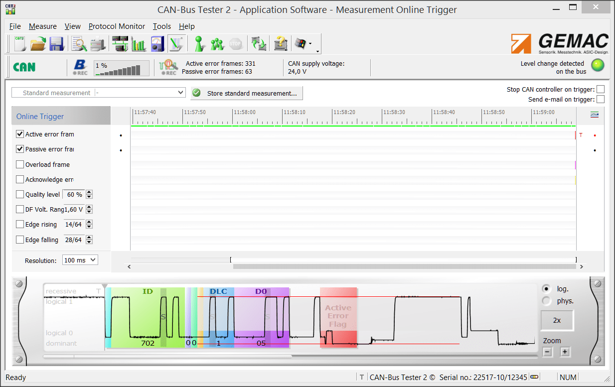 Über die Funktion Onlinetrigger kann man sich das letzte fehlerhafte Telegramm