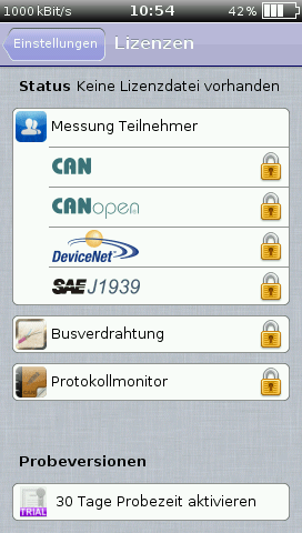 Das CANtouch ist im Auslieferzustand eingeschränkt. Die mögliche Funktionsvielfalt ist groß und nicht alle Kunden brauchen die gleichen Eigenschaften.