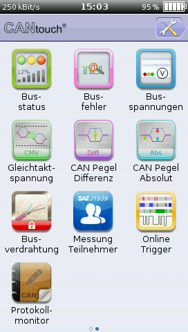 Erkennbar ist die Einstellung auch am Icon der App Teilnehmermessung. Im oberen Bereich des Icons wird das eingestellte Bussystem angezeigt.